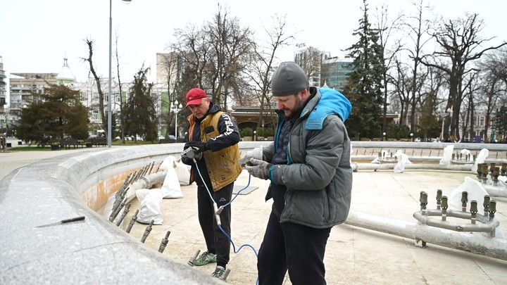 В Краснодаре завершается подготовка городских фонтанов и парков к весенне-летнему сезону.